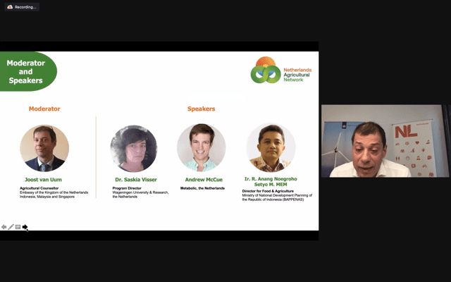 Het LAN team op de ambassades in Jakarta, Kuala Lumpur en Singapore heeft op 24 maart een gezamenlijke webinar georganiseerd. Het doel van de webinar was onder andere de introductie van de nieuwe landbouwraad Joost van Uum alsmede de presentatie van de aandachtsgebieden en sectoren voor de komende 4 jaar en het stimuleren van de samenwerking tussen Nederland en de drie landen.