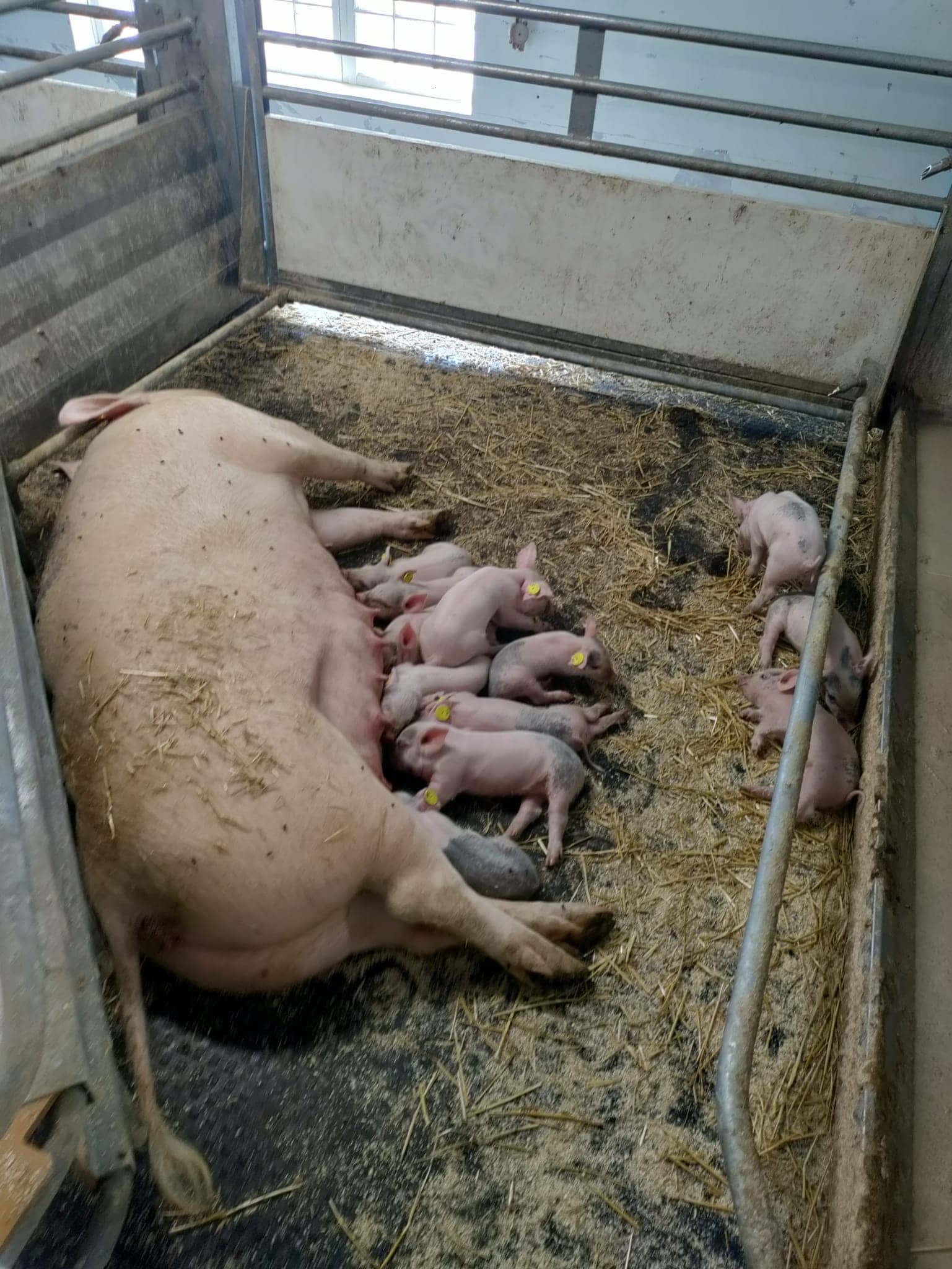 piglets suckling milk from their mother on a farm in Scandinavia