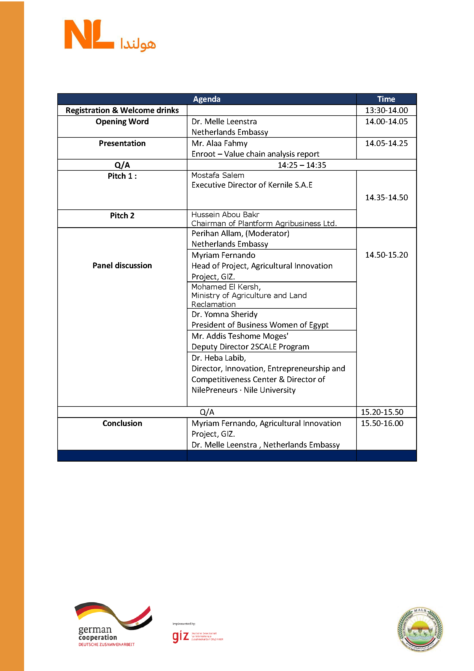 The Netherlands Agricultural Network in Cairo, together with GIZ Egypt's Agricultural Innovation Programme, are hosting the 3rd NL-Masr Agri-food Network hybrid event. Inclusive Agricultural Value Chains is the topic of conversation. Agripreneurs, and stakeholders in Government, Research and Development will engage inspire and be inspired through a very structured Agenda.