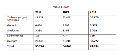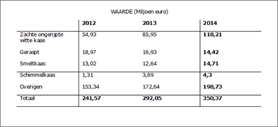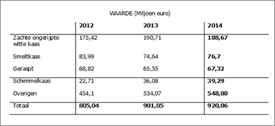 Uit de definitieve cijfers, gepubliceerd door de staatssecretaris van Handel, blijkt dat in 2014 de import van kaas 247.106 ton bedroeg, ter waarde van €920 miljoen.