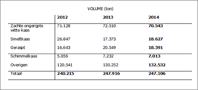 Onderstaande tabel geeft een overzicht van de kaasconsumptie naar soort: